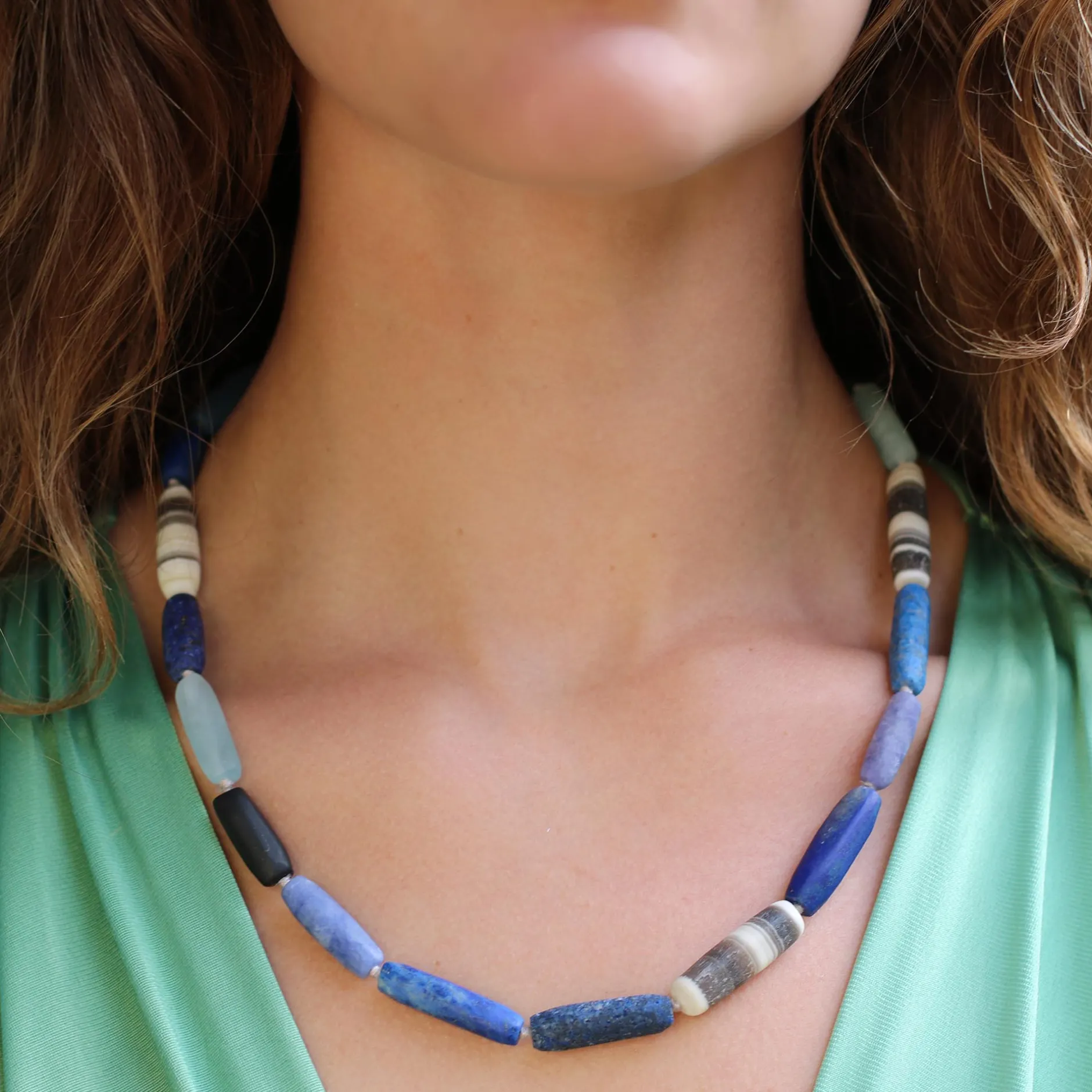 Hand honed beaded necklace with 18-karat yellow brushed gold clasp. Each necklace has a unique combination of gemstones. Brooke hand selects each bead for these playful and sophisticated necklaces that are perfect for layering. Stone hue and shape vary as each bead is unique.