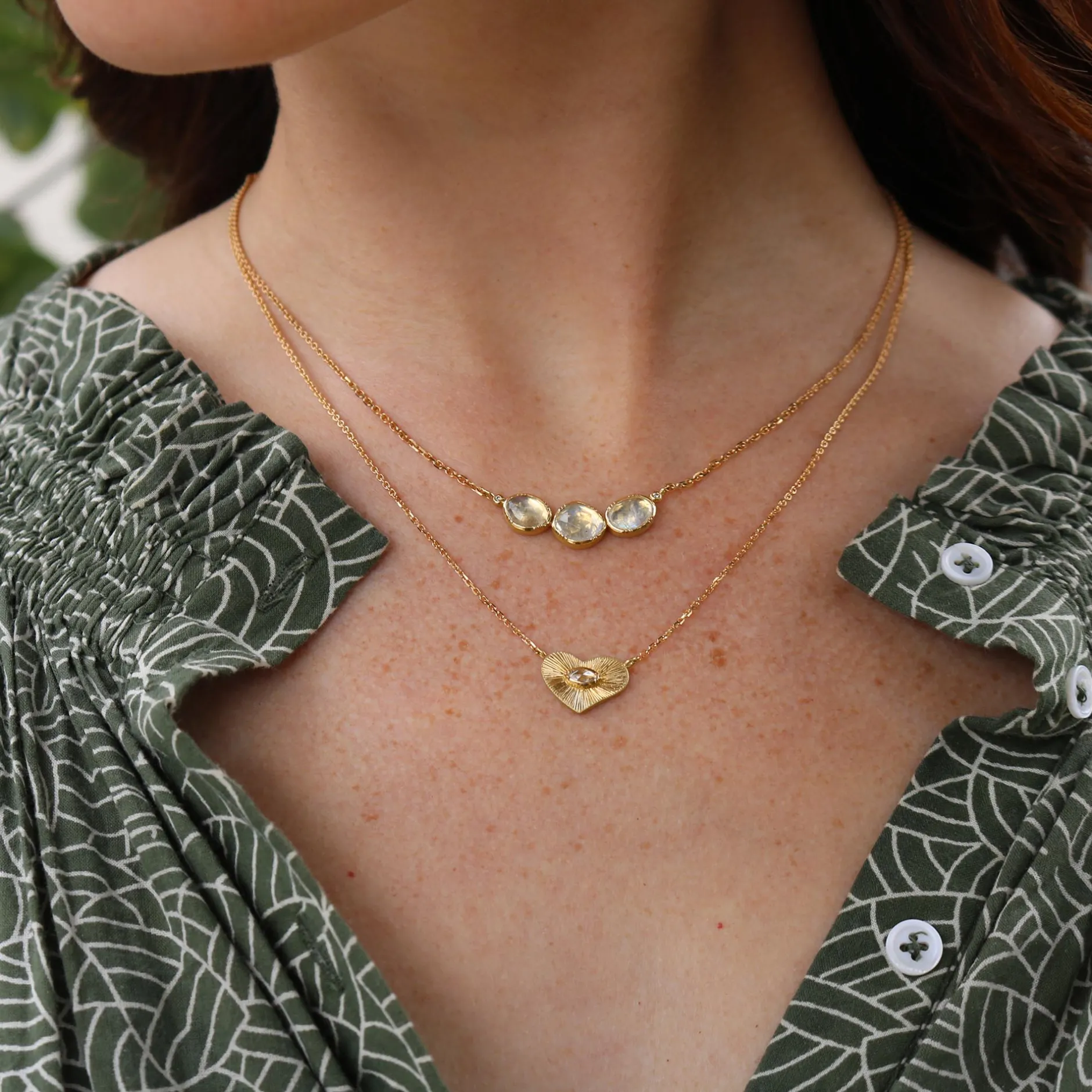 18k gold georgian bezel marquis diamond necklace with hand engraved detail.